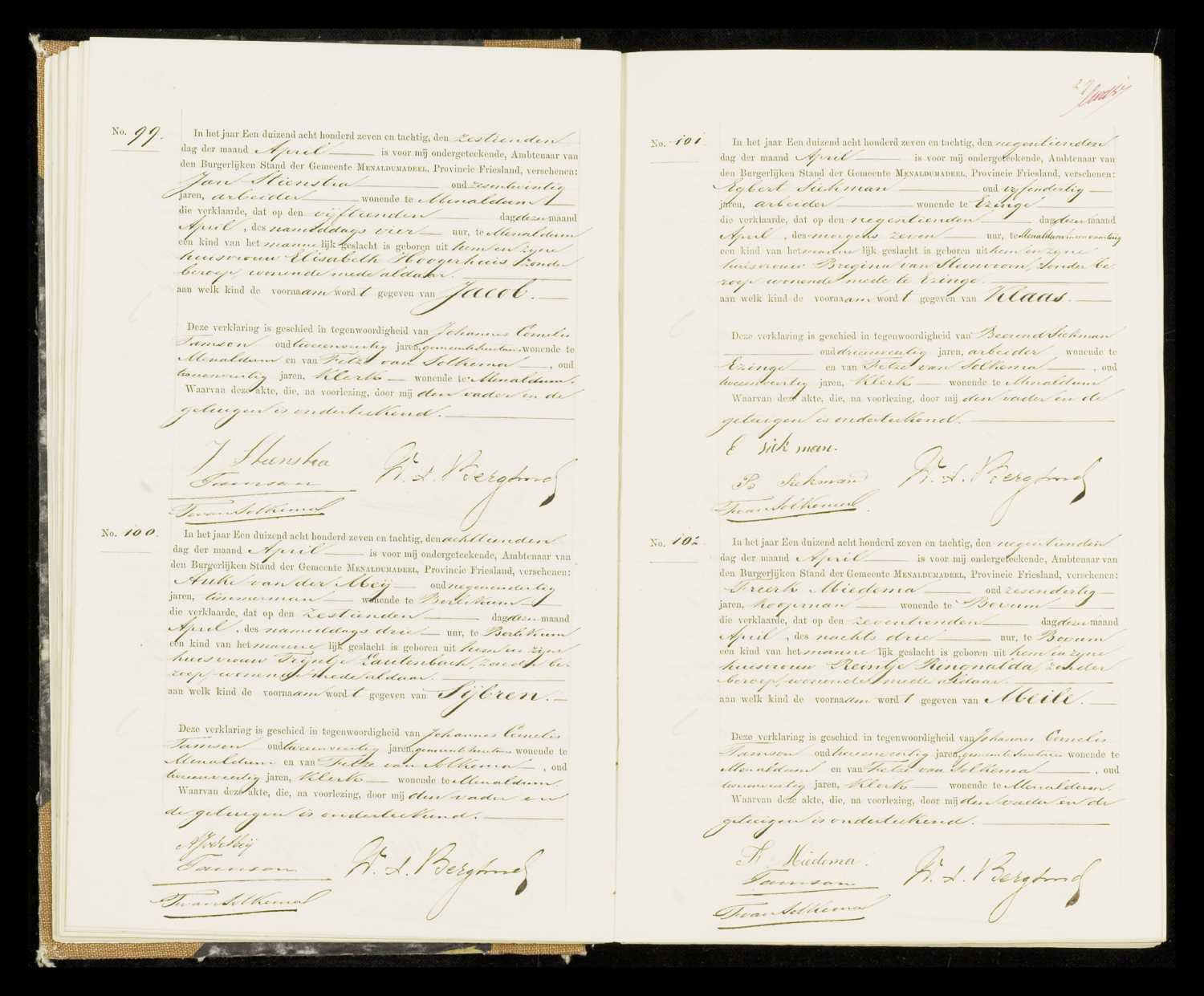 26 : "Burgerlijke standregister"; Pagina A100; Voornaamste bewijs