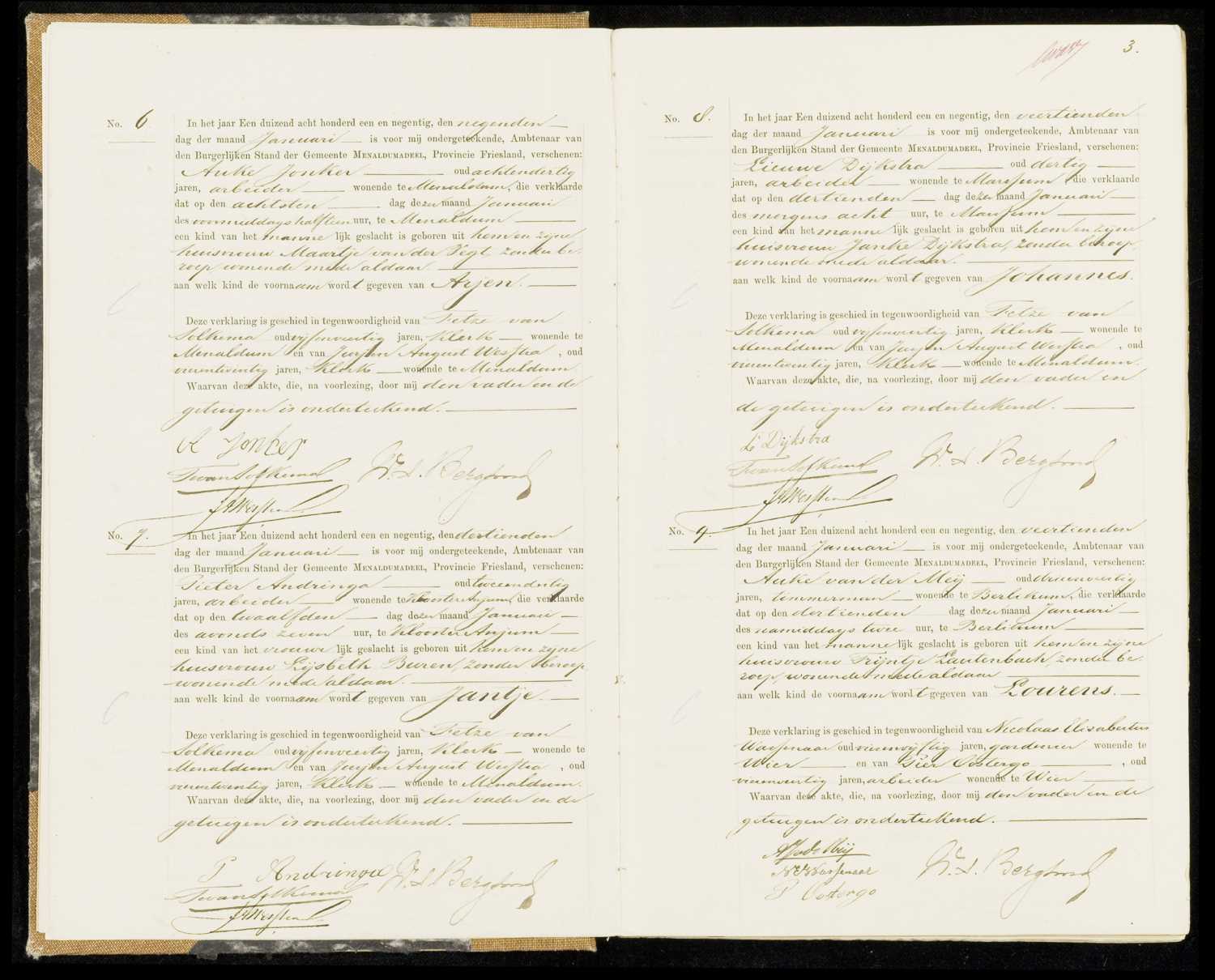 Geboorteregister 1891, Menaldumadeel, Aktenummer A9, Lourens van der Mey