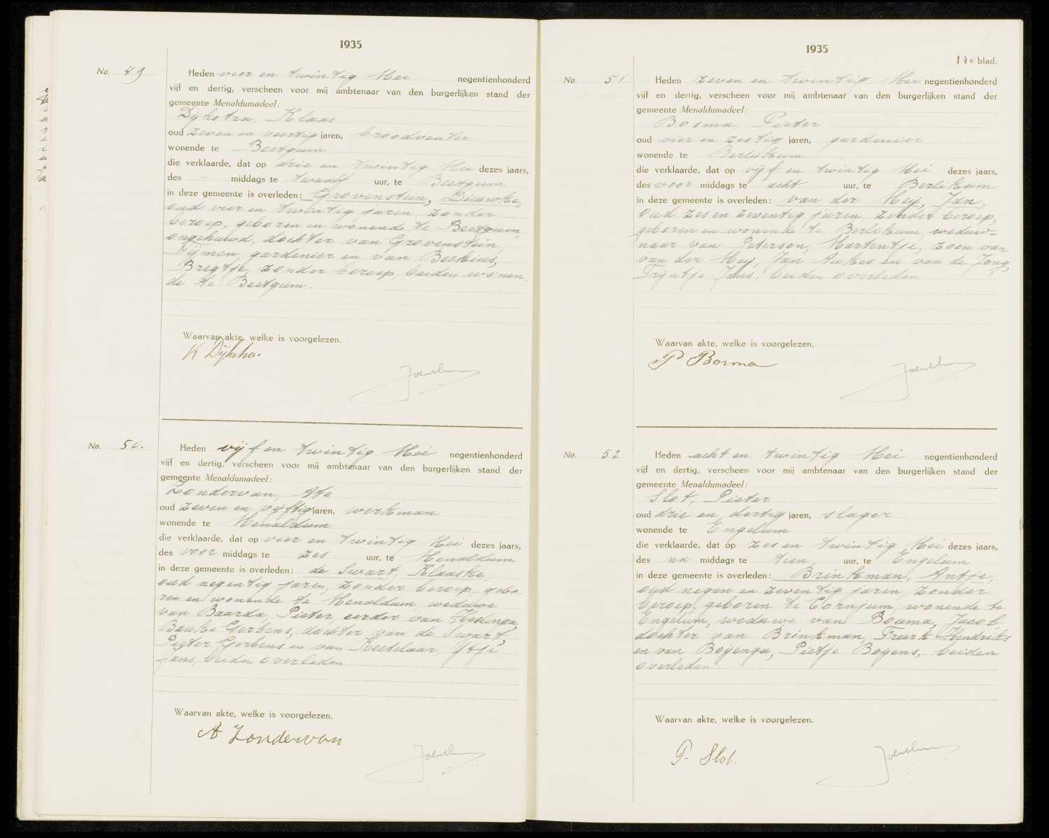 Overlijdensregister 1935, Menaldumadeel, Aktenummer A51, Jan van der Mey