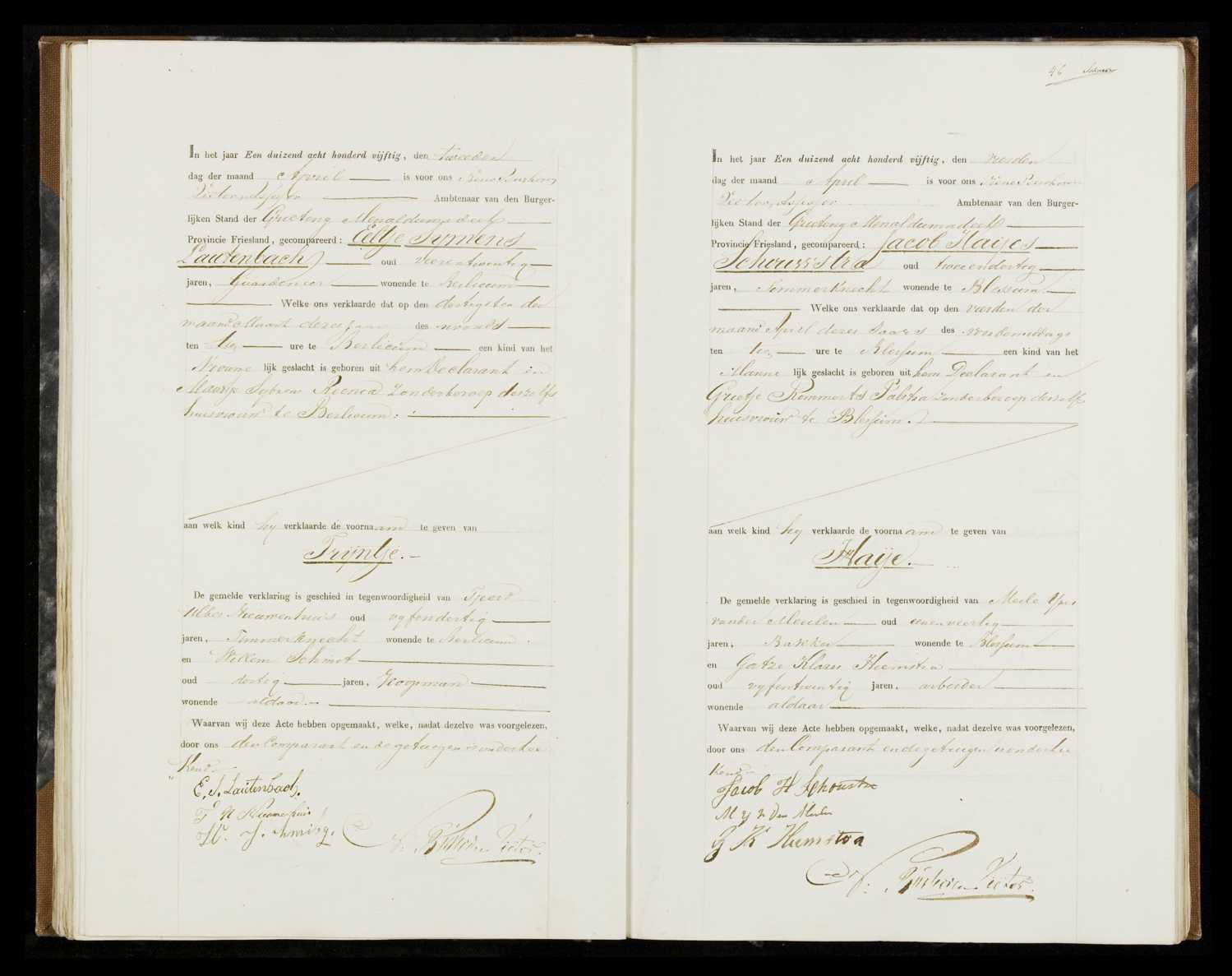 13 : "Burgerlijke standregister"; Pagina B45; Voornaamste bewijs
