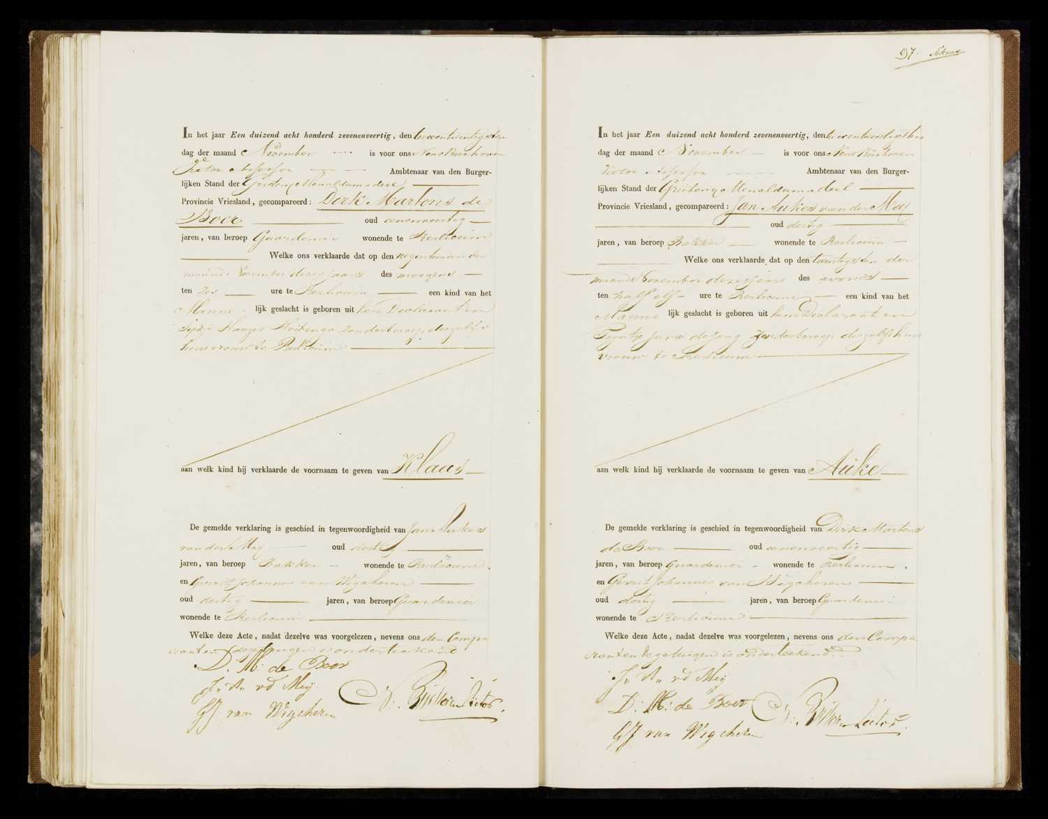 Geboorteregister 1847, Menaldumadeel, Paginanummer B97, Auke van der Mey