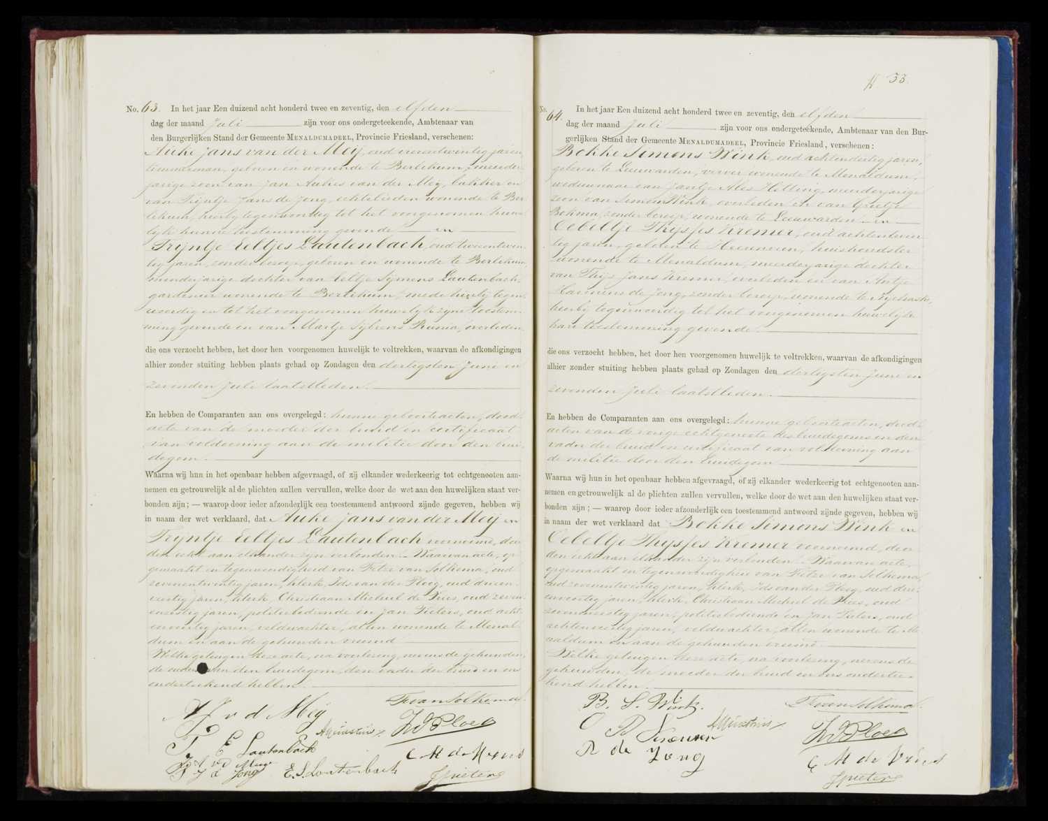 Huwelijksregister 1872, Menaldumadeel, Aktenummer A63, Auke Jans van der Mey