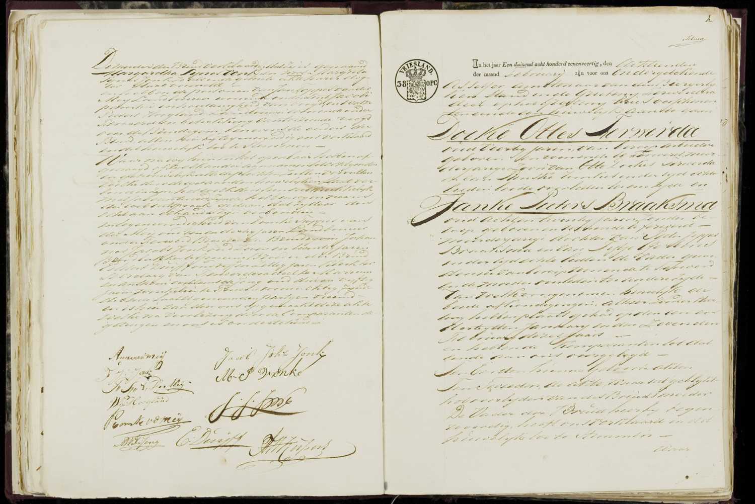 Huwelijksregister 1841, archiefnummer 30-11, Burgerlijke Stand Ferwerderadeel - Tresoar, inventarisnummer 2011, aktenummer 1