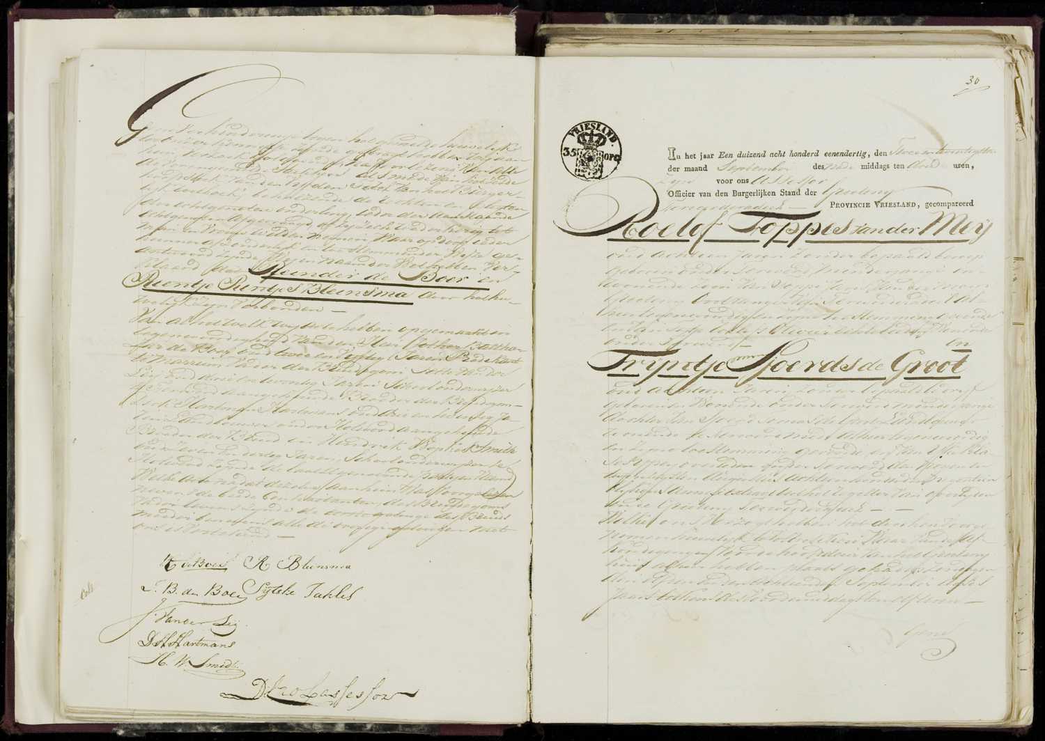 Huwelijksregister 1831, archiefnummer 30-11, Burgerlijke Stand Ferwerderadeel - Tresoar, inventarisnummer 2009, aktenummer 30