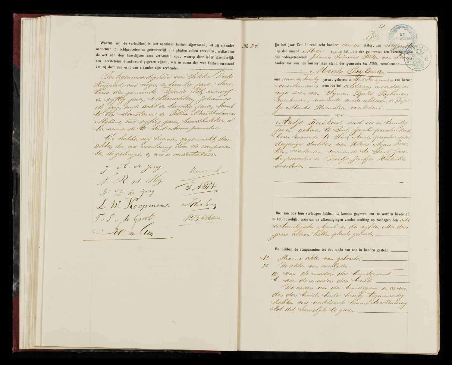 Gehuwd Donderdag 27 Mei 1858, Het Bildt, Friesland, Nederland