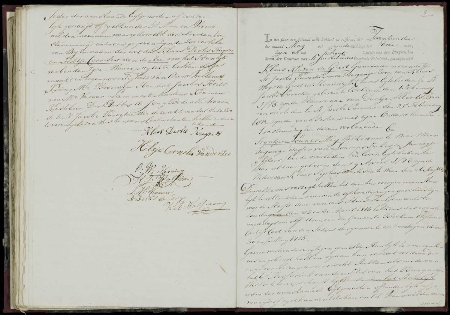 Huwelijksregister 1815 St. Jacobiparochie, archiefnummer 30-06, Burgerlijke Stand Het Bildt - Tresoar, inventarisnummer 2003, aktenummer 0005