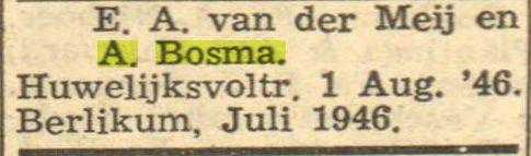 "Familiebericht". "Leeuwarder koerier". Leeuwarden, 30-07-1946. Geraadpleegd op Delpher op 08-03-2017, http://resolver.kb.nl/resolve?urn=ddd:010609780:mpeg21:a0067