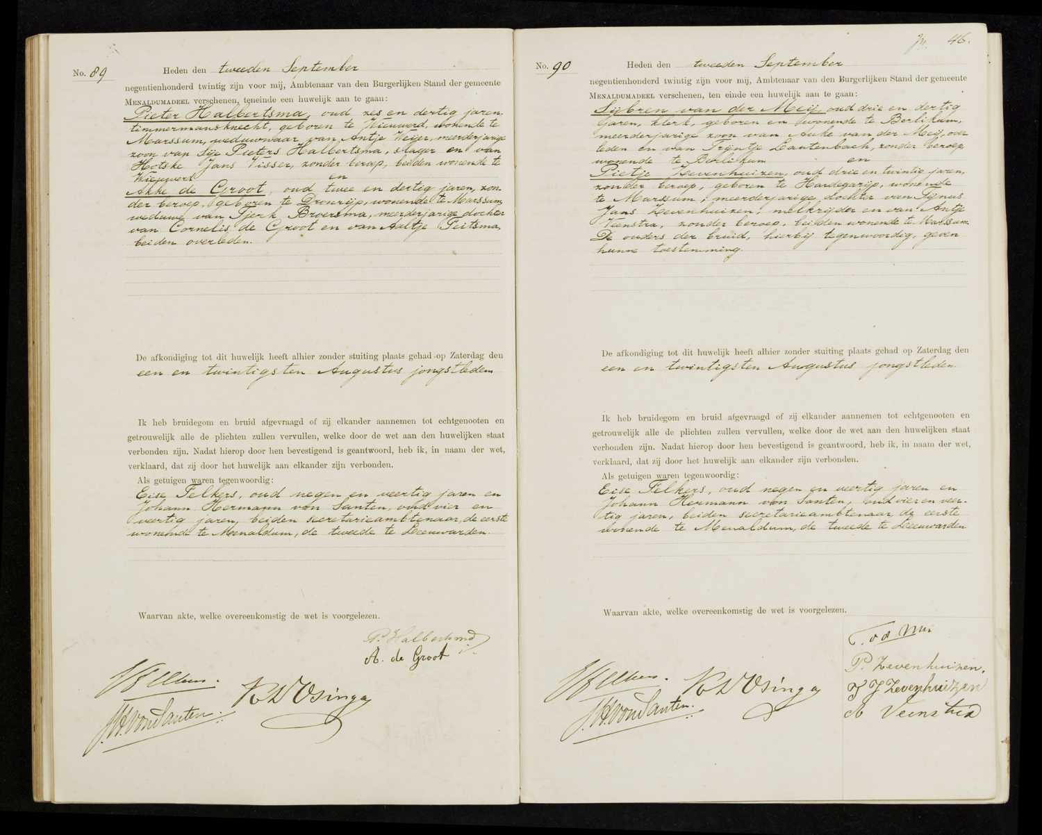Huwelijksregister 1920, Menaldumadeel, Aktenummer A90, Sybren van der Mey