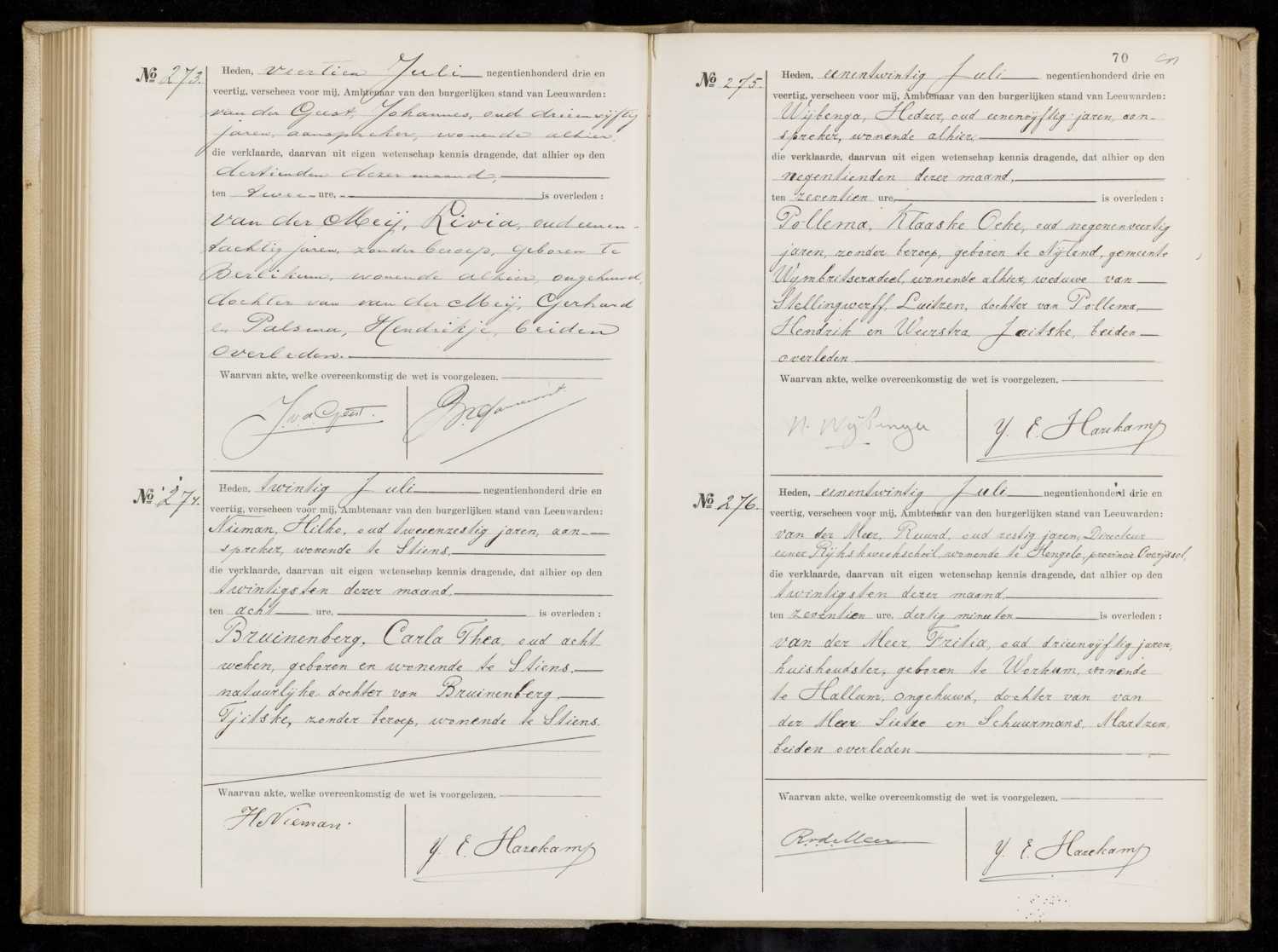 Overlijdensregister 1943, Leeuwarden, Aktenummer A273, Livia Gerhard van der Mey