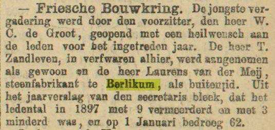 "BINNENLAND. LEEUWARDEN, 29 Januari.". "Leeuwarder courant". Leeuwarden, 31-01-1898. Geraadpleegd op Delpher op 06-11-2016, http://resolver.kb.nl/resolve?urn=ddd:010595070:mpeg21:a0002