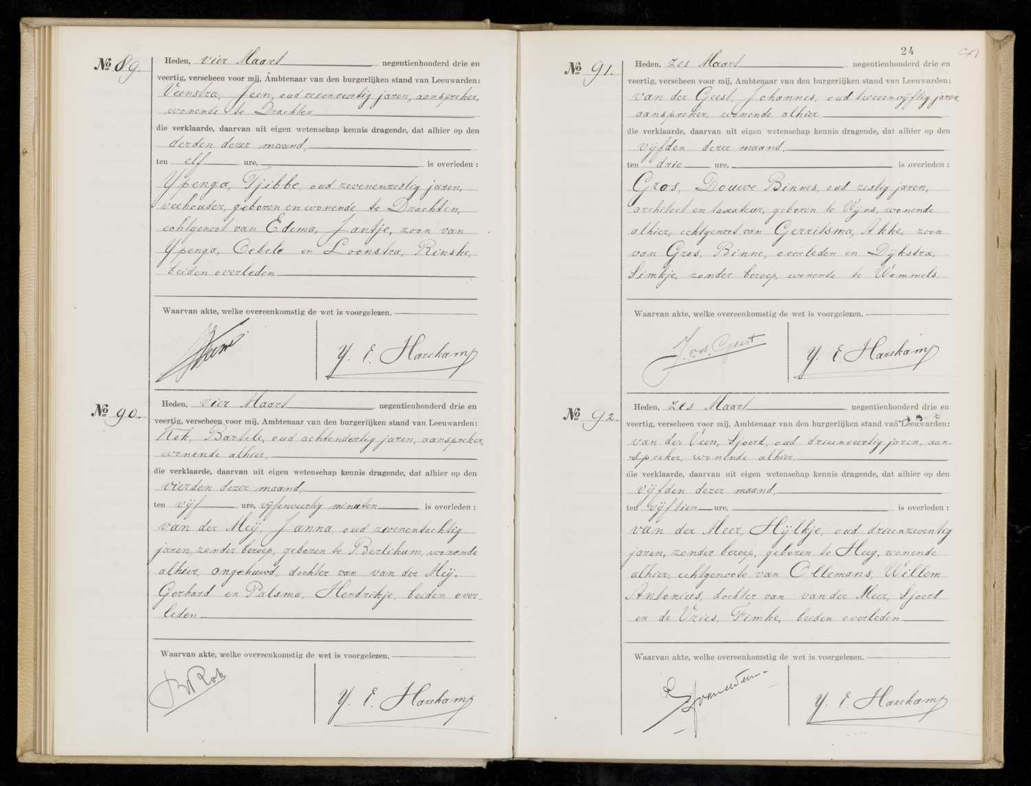 Bron: Burgerlijke standregister Soort registratie: Overlijdensakte Datum: 04-03-1943 Plaats: Leeuwarden