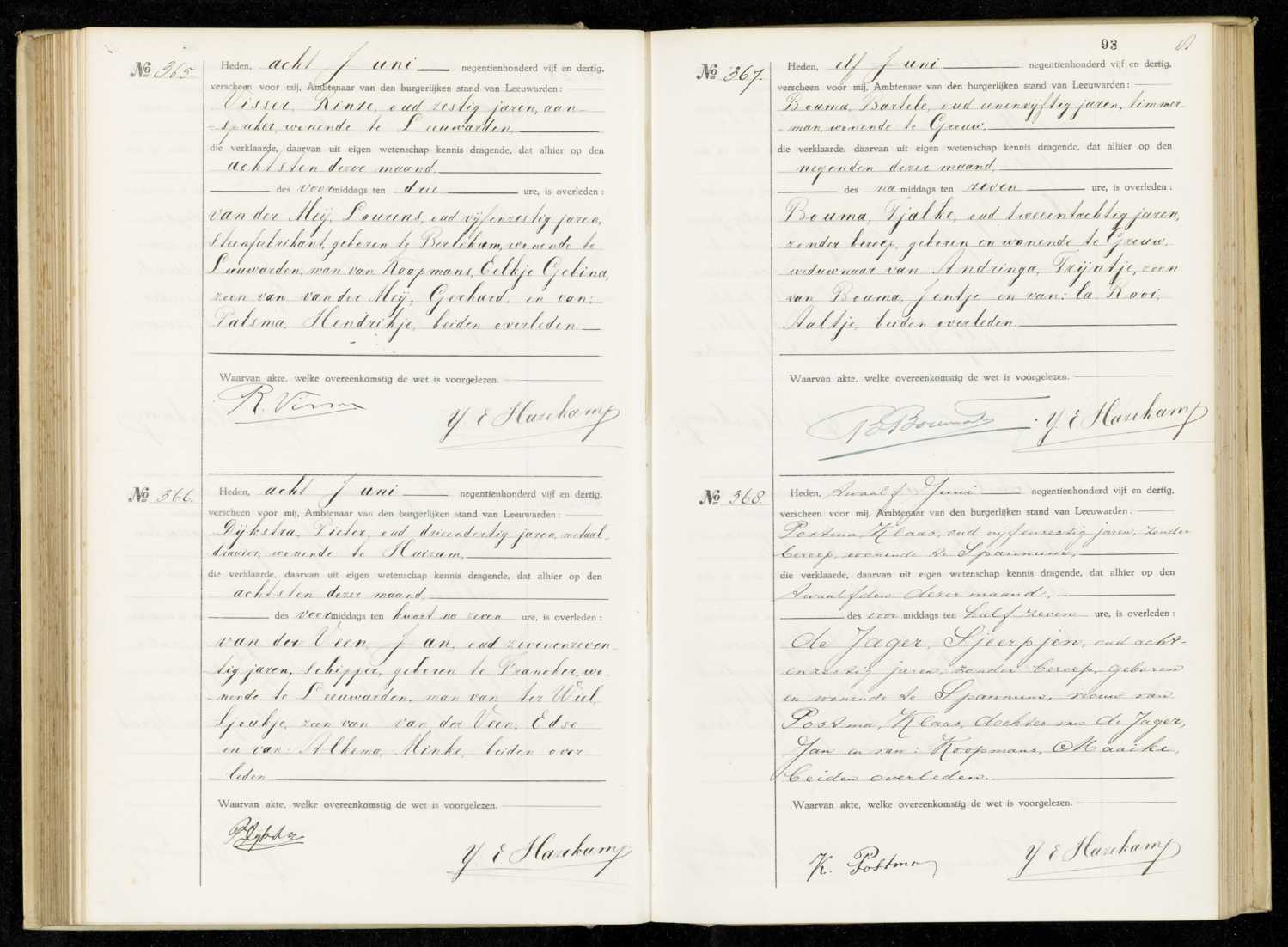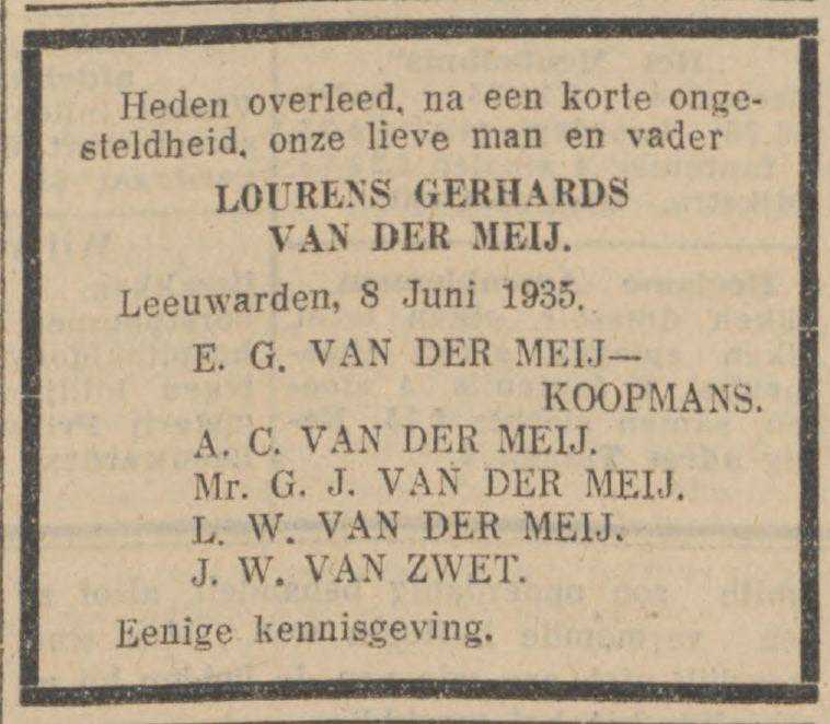 Overlijdensregister 1935, Leeuwarden, Aktenummer A365, Lourens van der Mey