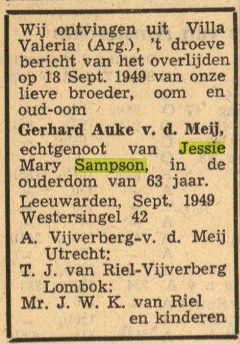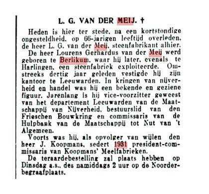 "Familiebericht". "Leeuwarder courant". Leeuwarden, 01-06-1940. Geraadpleegd op Delpher op 09-04-2017, http://resolver.kb.nl/resolve?urn=ddd:010607981:mpeg21:a0261