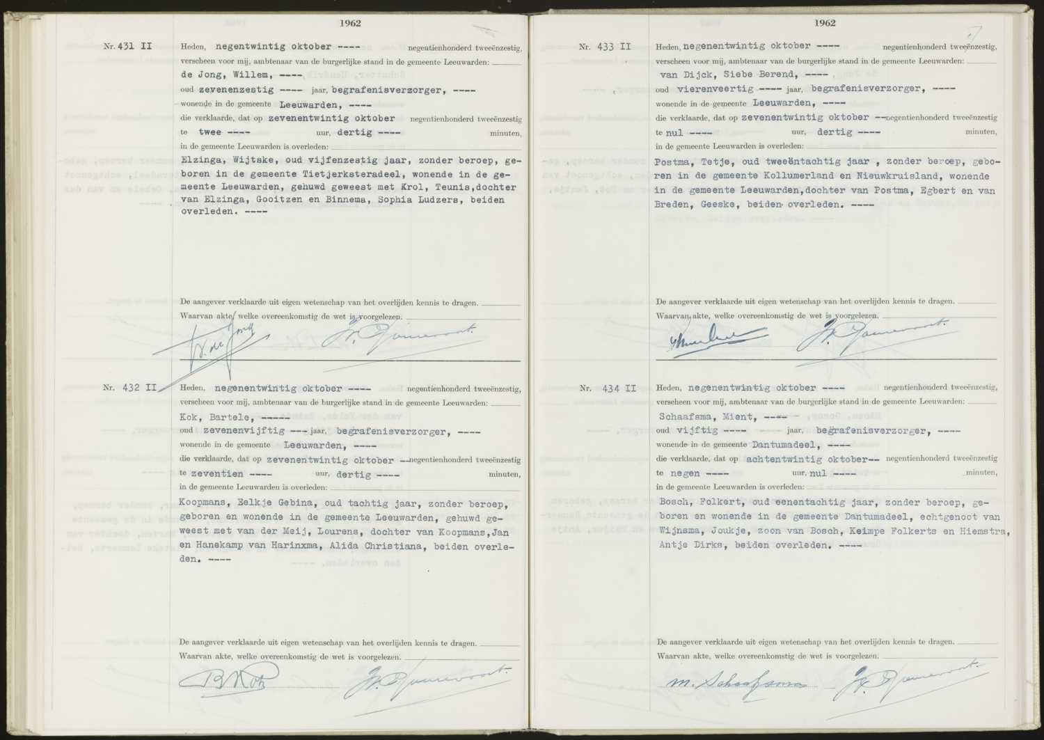 Overlijdensregister 1962 II, Leeuwarden, Aktenummer A432 II, Eelkje Gebrina Koopmans