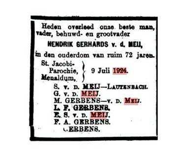opm: zie huwelijksregister Hendrik Gerhards van der Meij