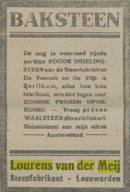 Zoon Lourens (1869-1935) werd eveneens steenfabrikant en wel van het z.g. nieuwe tichelwerk. Hij was gehuwd met een dochter van Koopmans, grutter en meelfabrikant op het Vliet te Leeuwarden.