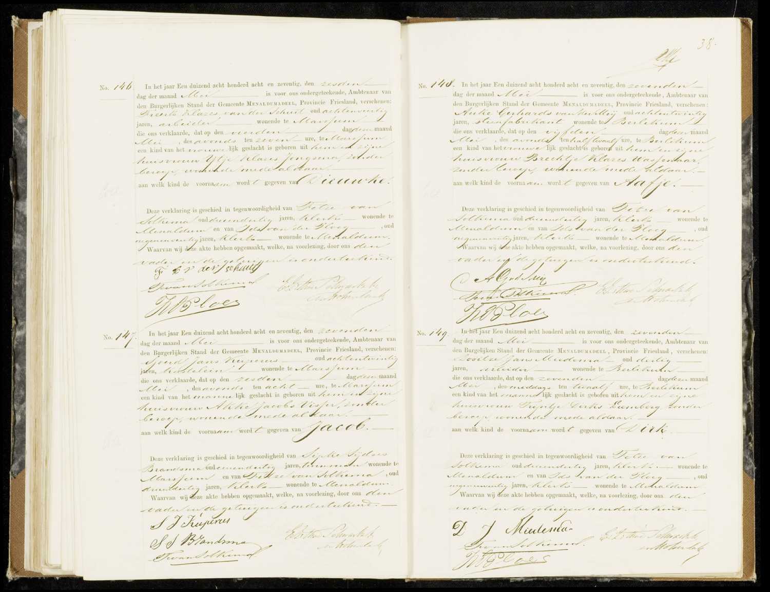 Geboorteregister 1878, Menaldumadeel, Aktenummer A148, Aafje van der Mey
