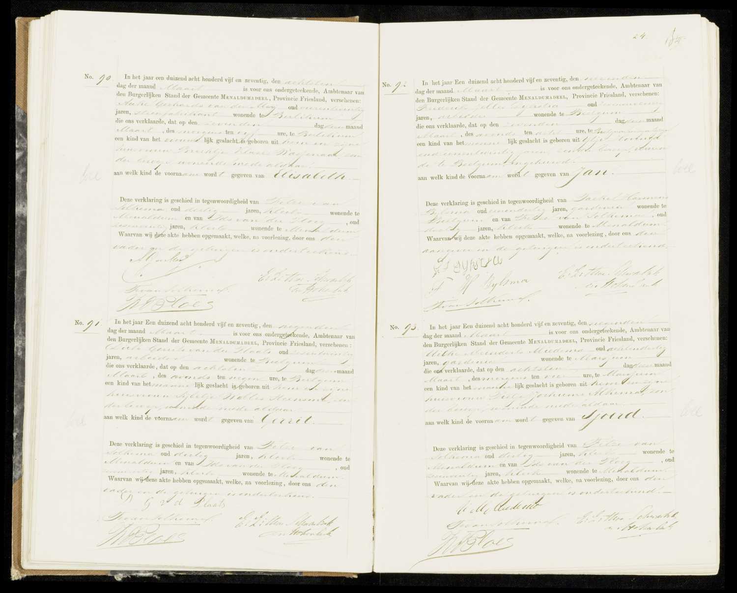 Geboorteregister 1875, Menaldumadeel, Aktenummer A90, Elsabeth van der Mey