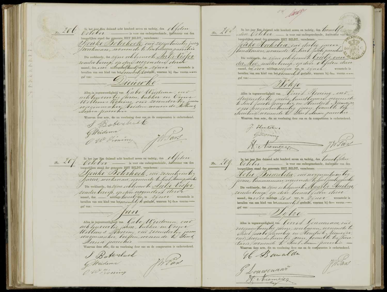 Geboorteregister 1887, archiefnummer 30-06, Burgerlijke Stand Het Bildt - Tresoar, inventarisnummer 1041, aktenummer 208