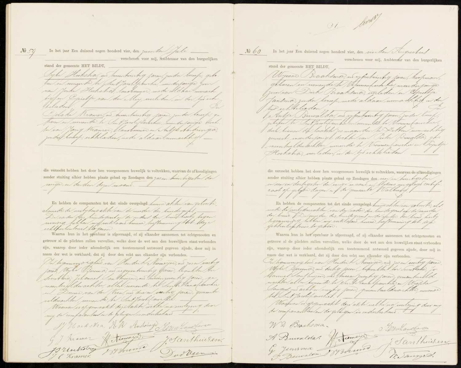 Huwelijksregister 1904, archiefnummer 30-06, Burgerlijke Stand Het Bildt - Tresoar, inventarisnummer 2043, aktenummer 59