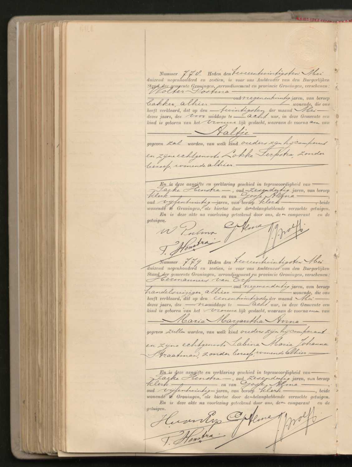 Bron: burgerlijke standregister Soort registratie: geboorteakte (Akte)datum: 22-05-1916 Plaats: Groningen
