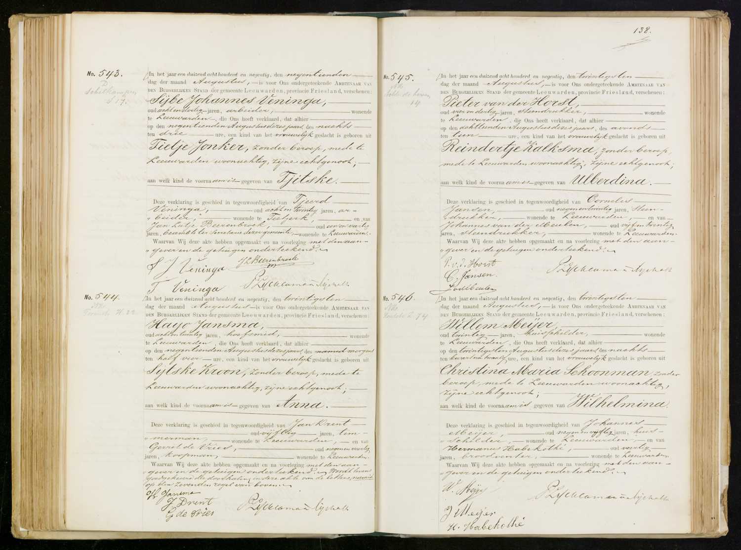 Geboorteregister 1890, archiefnummer 9, Gemeentebestuur van Leeuwarden 1811-1941, inventarisnummer 3439, aktenummer 544