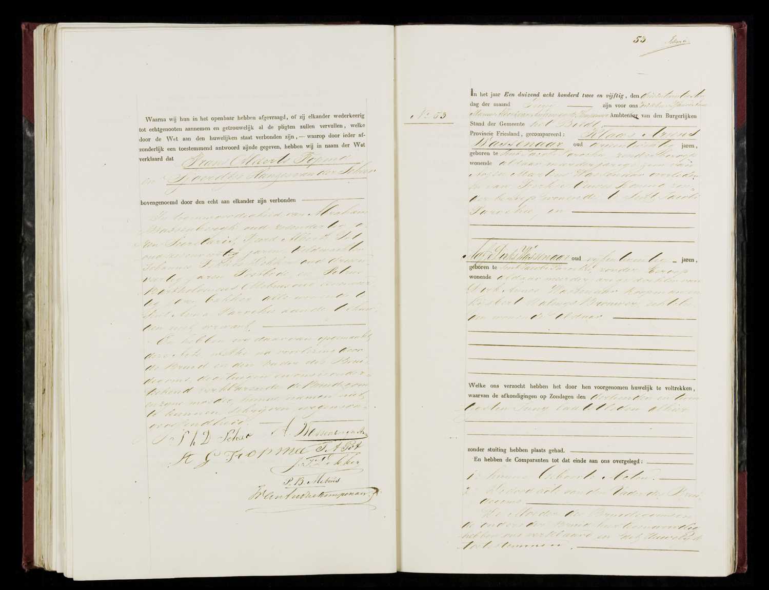 Huwelijksregister 1852, archiefnummer 30-06, Burgerlijke Stand Het Bildt - Tresoar, inventarisnummer 2015, aktenummer 53