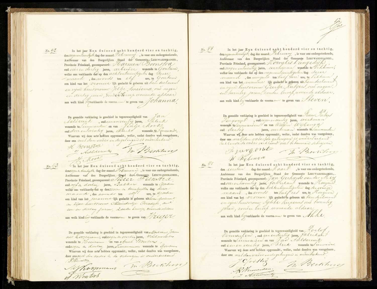 Geboorteregister 1884, Leeuwarderadeel, Aktenummer A45