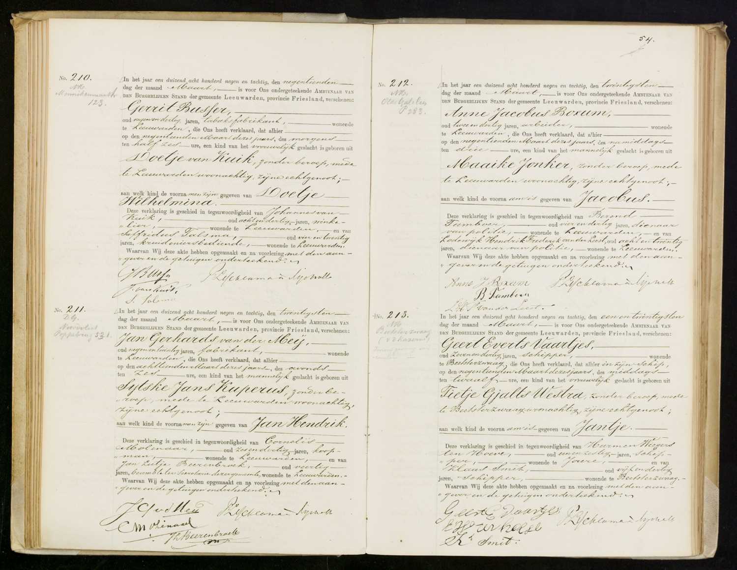 Geboorteregister 1889, Leeuwarden, Aktenummer A211, Jan Hendrik van der Mey