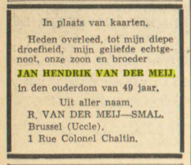 "Familiebericht". "De Tijd : godsdienstig-staatkundig dagblad". 's-Hertogenbosch, 06-01-1943. Geraadpleegd op Delpher op 05-12-2015, http://resolver.kb.nl/resolve?urn=ddd:010380428:mpeg21:a0048