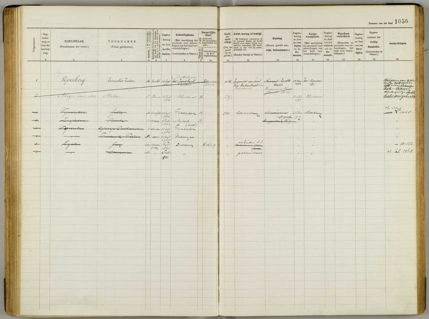 Bevolkingsregister 1904 - 1922, Leeuwarden, Paginanummer B1056, Kornelis Pieter Vijverberg