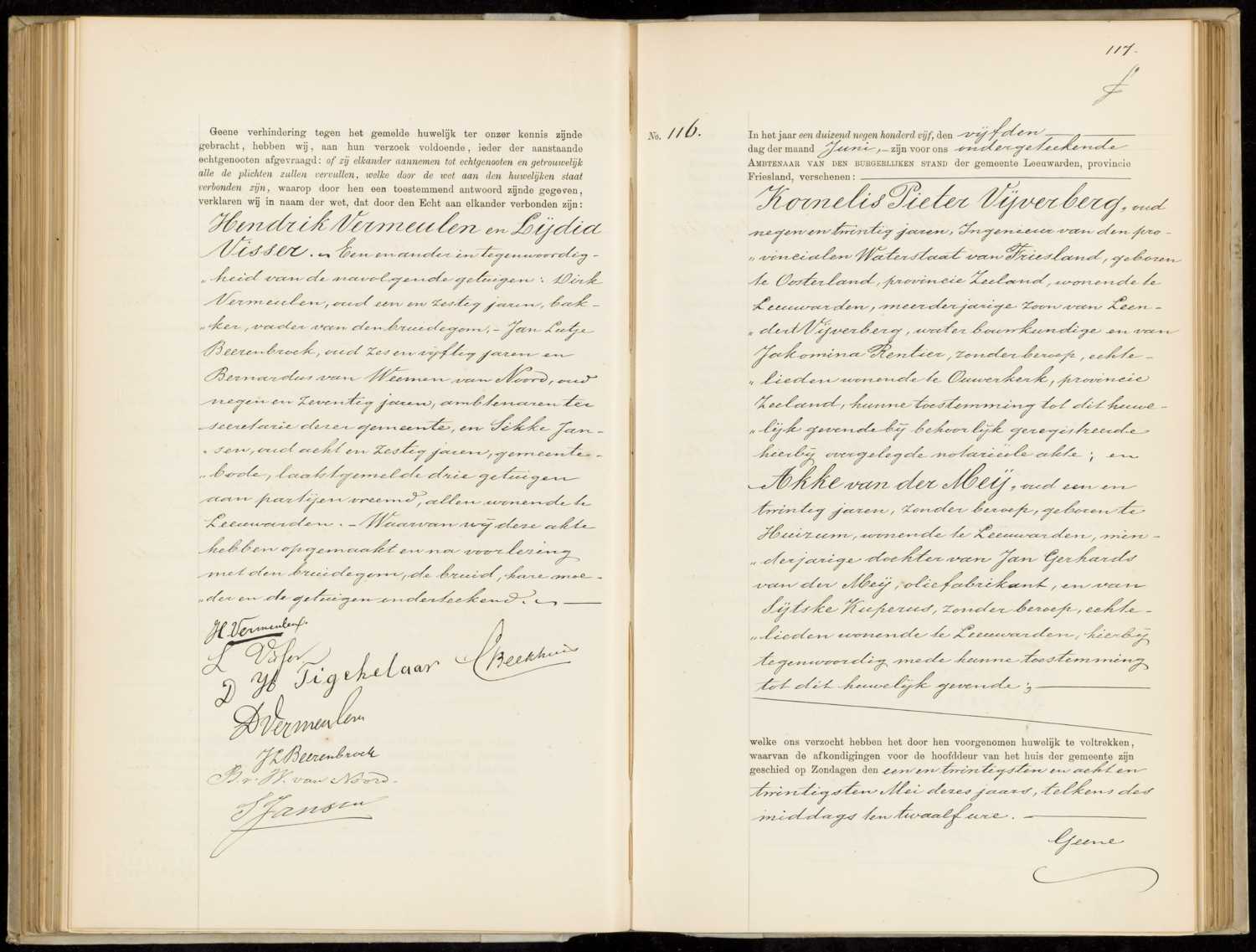 Huwelijksregister 1905, Leeuwarden, , Aktenummer A116