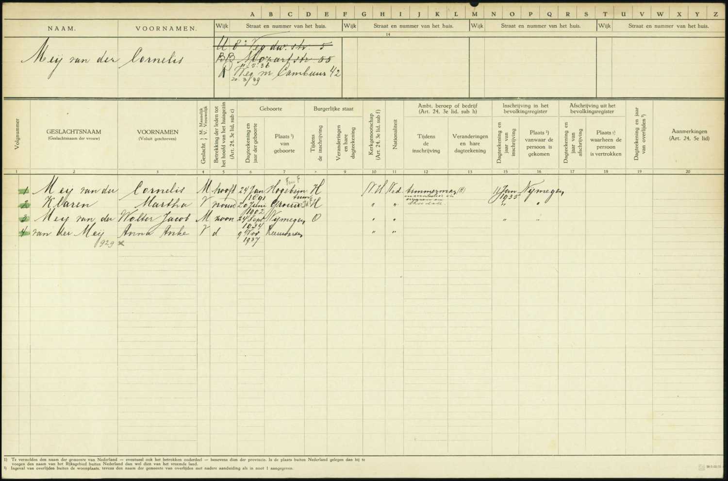 Geregistreerde Cornelis van der Meij geboren op 1891
