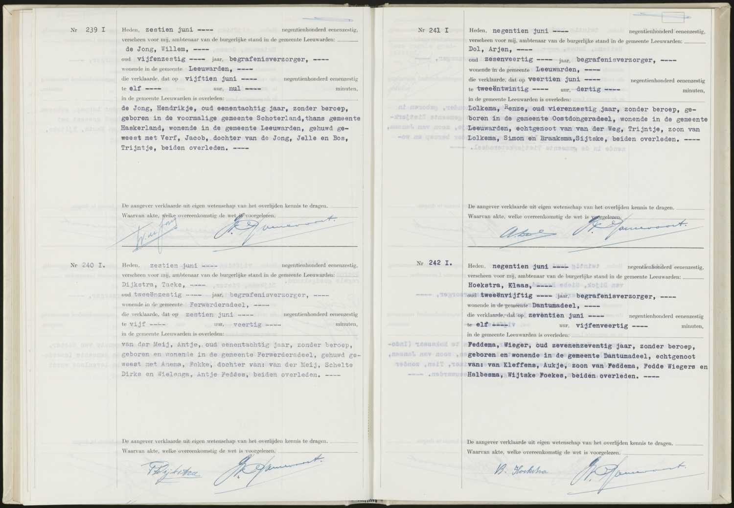 Bron: Burgerlijke standregister Soort registratie: Overlijdensakte Datum: 16-06-1961 Plaats: Leeuwarden Soort akte: Overlijdensakte
