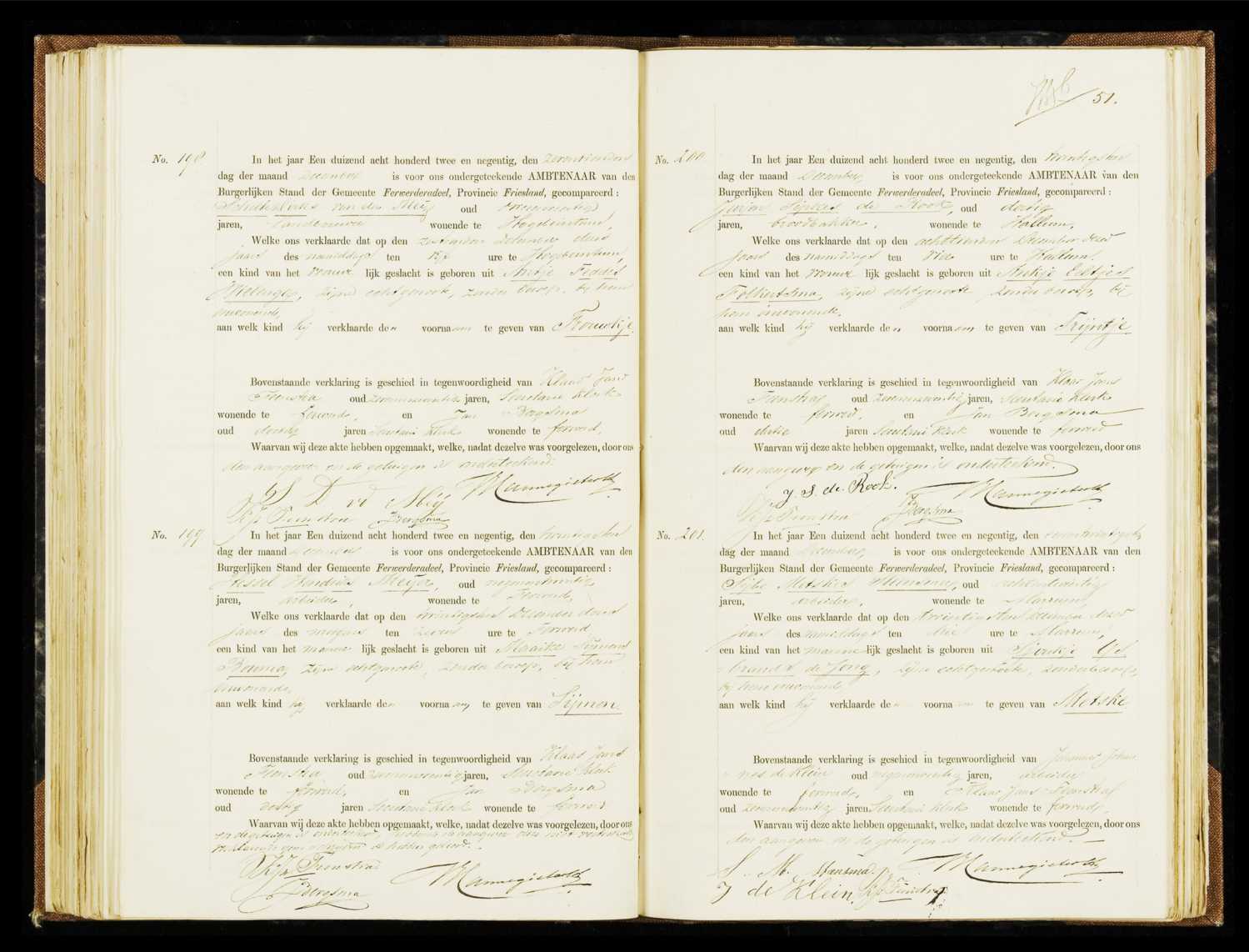 Geboorteregister 1892, Ferwerderadeel, Aktenummer A198, Frouwkje van der Mey