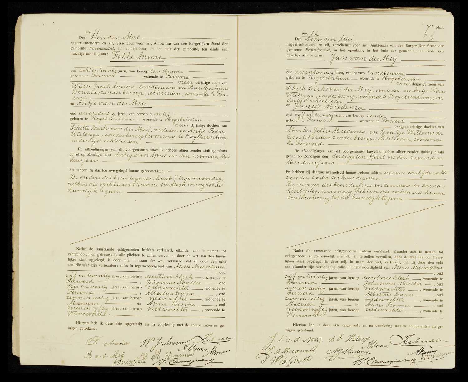 Gehuwd Woensdag 10 Mei 1911, Ferwerderadeel, Friesland, Nederland7