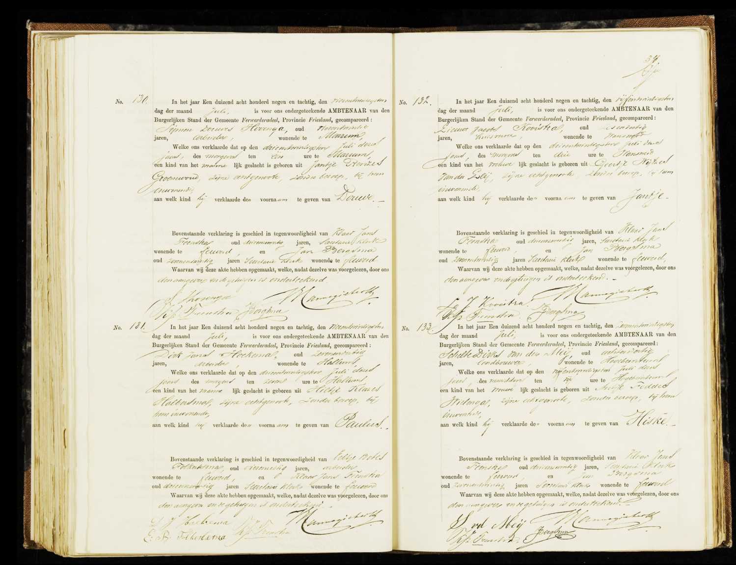 Geboorteregister 1889, Ferwerderadeel, Aktenummer A133, Hiske van der Mey