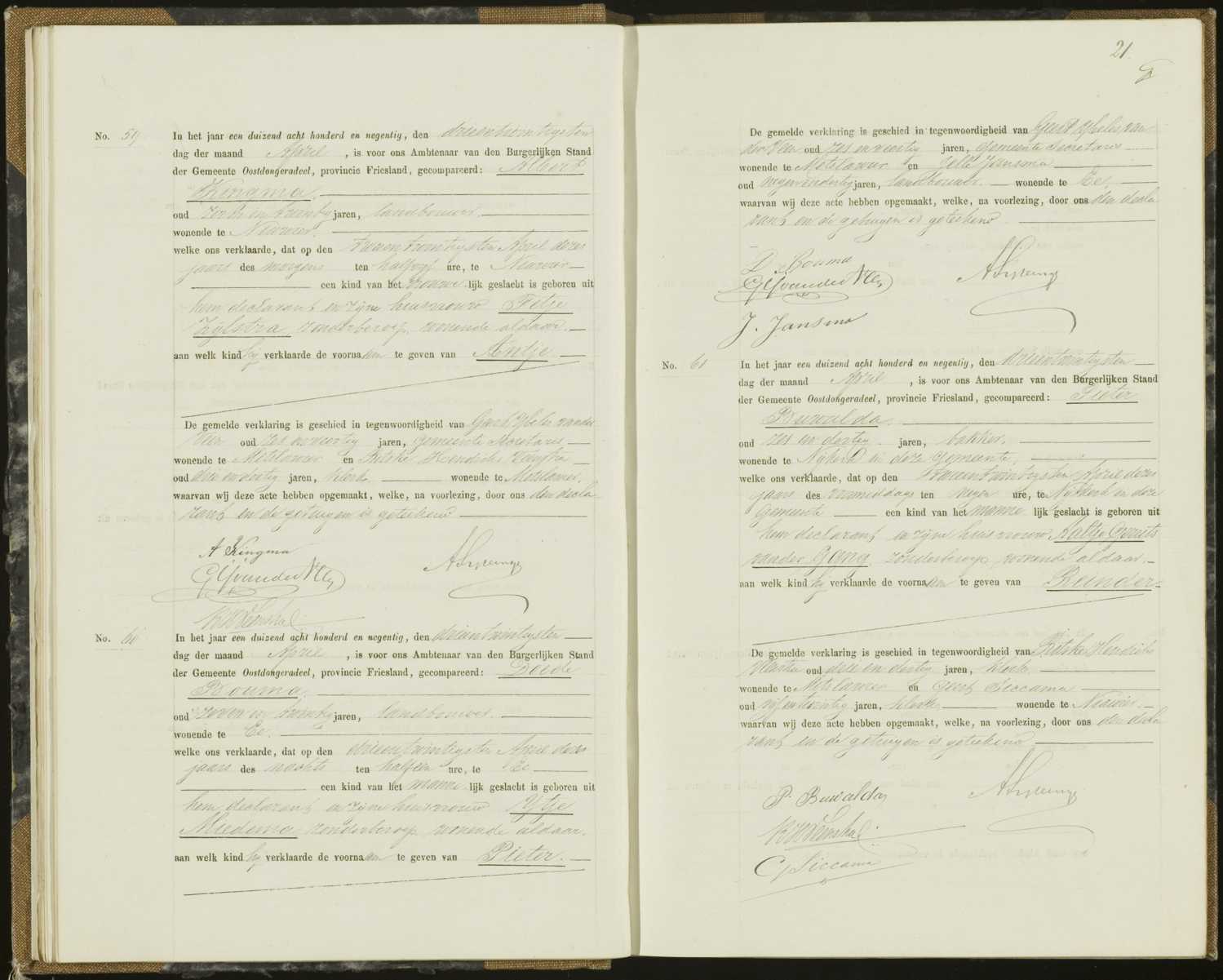 Geboorteregister 1890, Oostdongeradeel, Aktenummer A60, Pieter Bouma