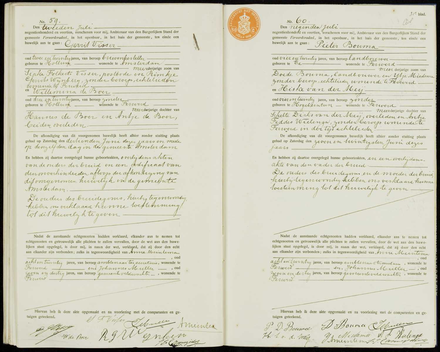 Gehuwd Donderdag 9 Juli 1914, Ferwerderadeel, Friesland, Nederland36