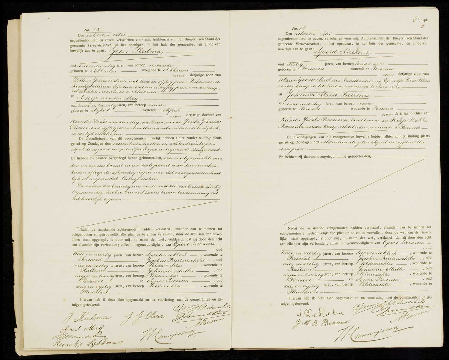 Huwelijksregister 1907, Ferwerderadeel, , Aktenummer A13, Jetze Kalma