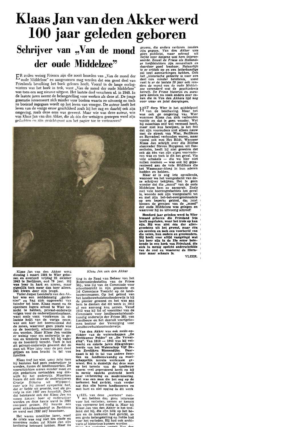 Geboorteregister 1864, Menaldumadeel, Aktenummer A66, Klaas van den Akker