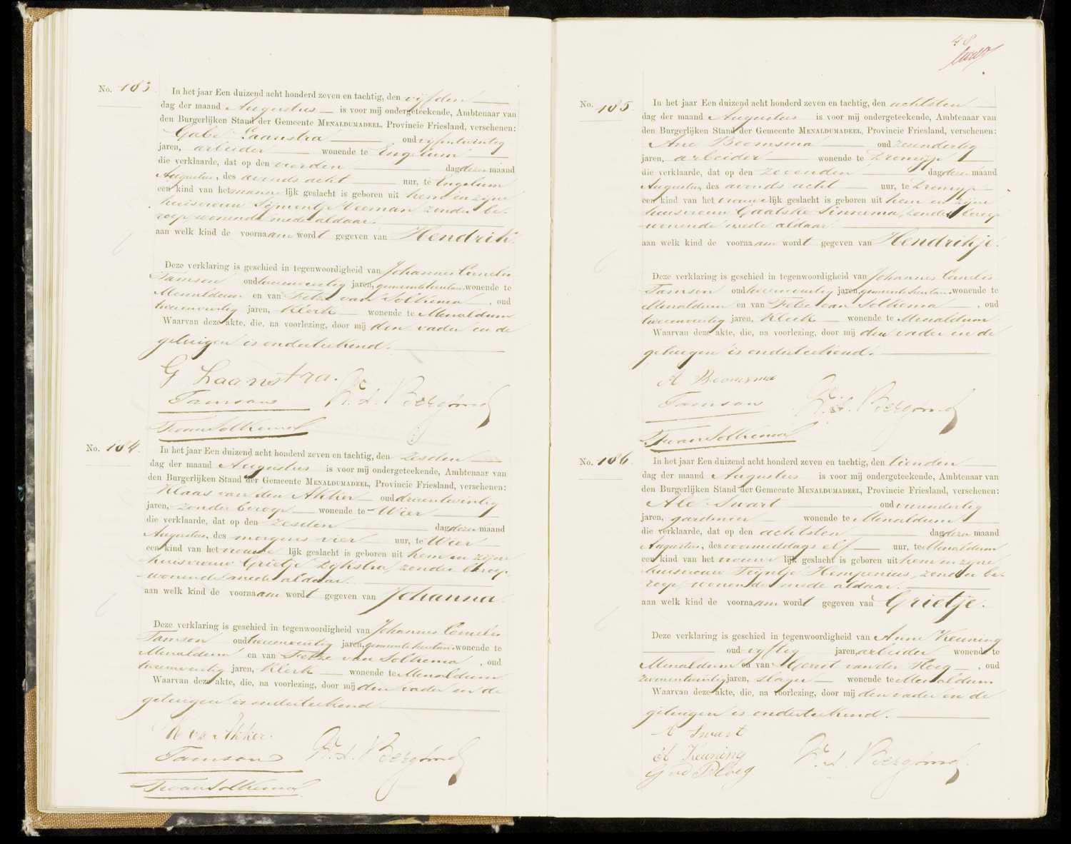 Geboorteregister 1887, Menaldumadeel, Aktenummer A184, Johanna van den Akker