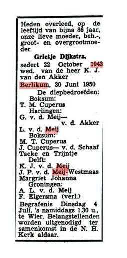 Gestorven Vrijdag 22 October 1943, Berlikum, Menaldumadeel, Friesland, Nederland3