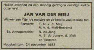 "Familiebericht". "Leeuwarder courant : hoofdblad van Friesland". Leeuwarden, 26-11-1983. http://resolver.kb.nl/resolve?urn=ddd:010622482:mpeg21:a0299