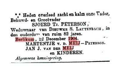 Martentje Sjoerds PETERZON5 {V} [P1071] = Jan Jans VAN DER MEIJ {M} [P27] > Familie [F402]