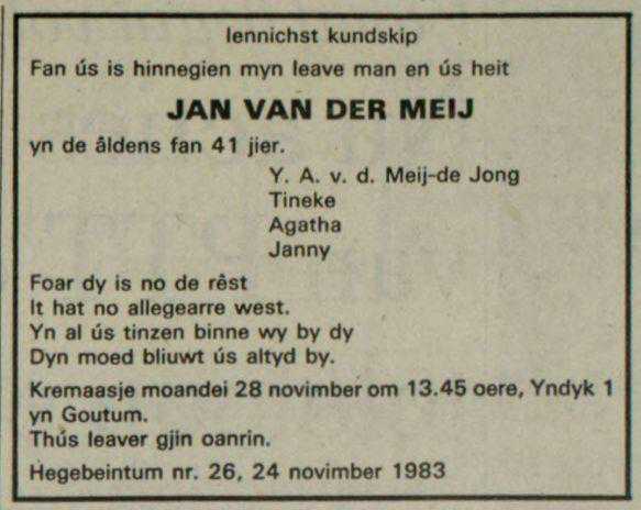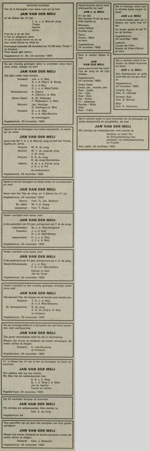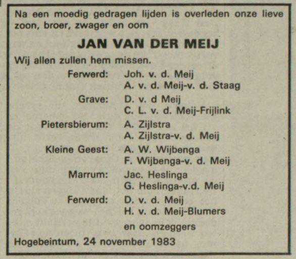 Gestorven Donderdag 24 November 1983, Hogebeintum, Ferwerderadeel, Friesland, Nederland4