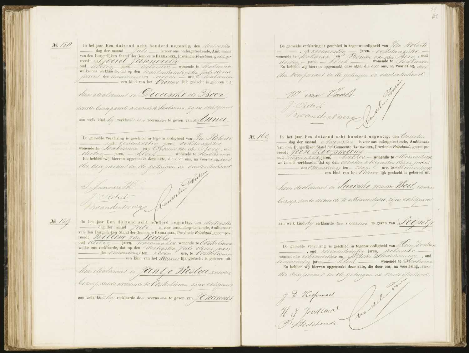Geboorteregister 1890, archiefnummer 30-05, Burgerlijke Stand Barradeel - Tresoar, inventarisnummer 1040, aktenummer 160