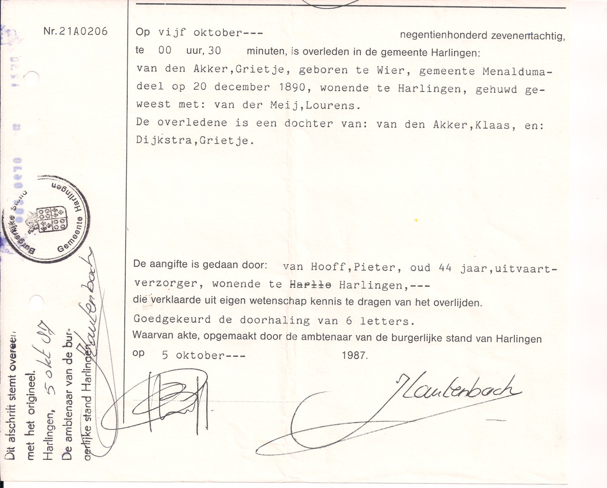 - (download) Overlijdensregister 1929, Trijntje Lautenbach.jpg . . 2,454 × 3,941 . . 1.12 MB . . Peter . . 23:55, 12 February 2017